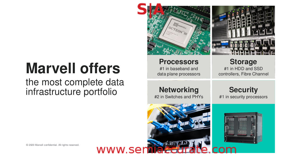 As useful as fab independence is, it is not the real reason Marvell has a good thing on it’s hands, IP is. Take a look at the range of Marvell IP, they are big in several major sectors, CPU, storage, networking, and security. Remember they bought Cavium a while back so they have a range of custom ARM cores as well as access to the official offerings. They are the leader in 5G ASICs right now so they have PHYs and SerDes too, and don’t forget QLogic. Security chips are part of the Marvell portfolio as well and the list goes on. You might not hear too much about the company directly but it is hard to buy a PC or device without something from them in the box.