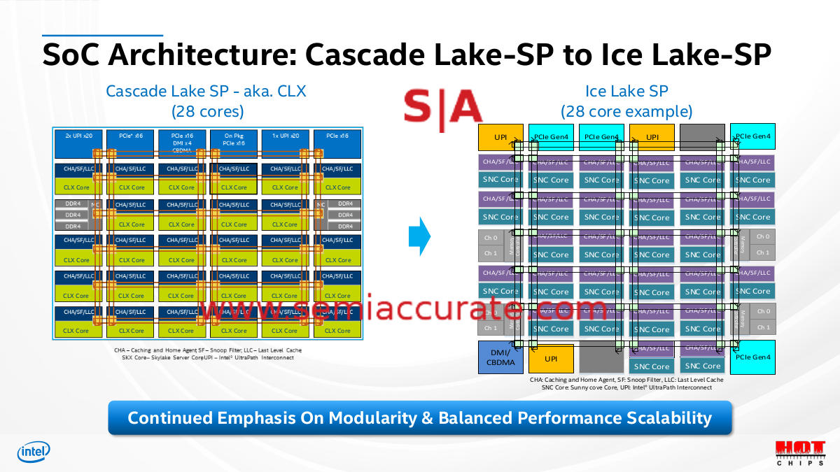 If you doubt this, take a look at the HCC die which has 28C on die according to the Hot Chips 32 talk from Intel. The highest core counts from the HCC dies on the market is 26 on the 5320, XCC dies are used on the 28C 6330 and 6348. That same 40C die is used for volume products down to the 16C 6346, stop an ponder for a second what that says about yields. Don’t forget that a ‘perfect’ 28C is significantly easier to achieve than a ‘perfect’ 40C. Before you point out AMD has an 8C product from 64C candidates, that is for cache, Intel’s cache scales down with lit cores, AMD’s doesn’t.
