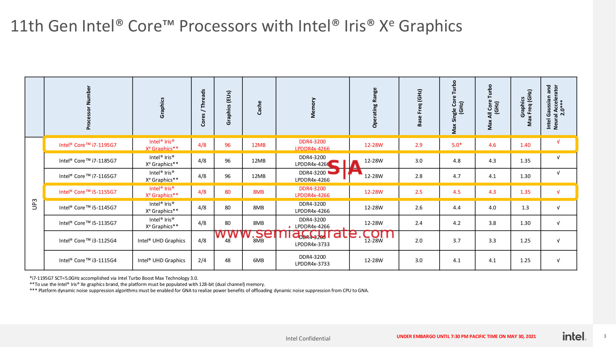 So what is the brilliance that changed the topic of this article? Simply put Intel is launching two new SKUs of the small Tiger Lake 4C CPU and a rebadged Mediatek 5G modem module, more on that later. They sent SemiAccurate the PDFs a few days ago and we then asked if there was a briefing. The reply was, “No briefs this round however everything will be announced at Intel’s keynote at Computex.” which is fair enough, not everything has or needs a briefing.