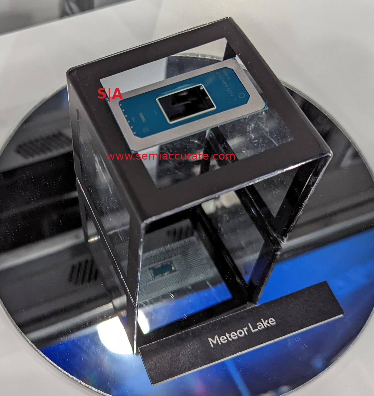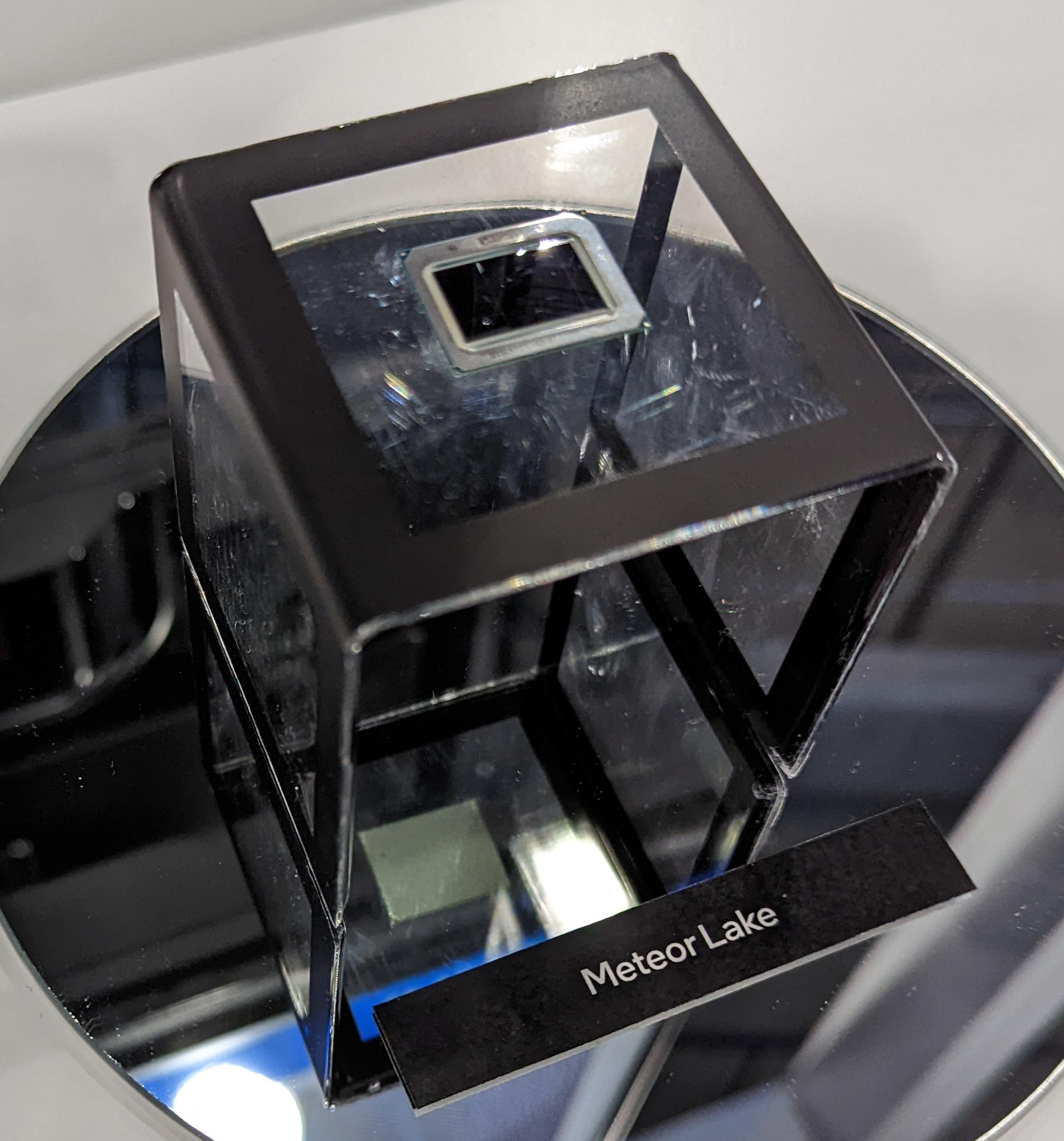 Last up we have two Meteor Lake packages, the normal laptop and the ultra-thin/small variants. The silicon is likely the same between the two, just the packaging, fusing, and TDP are going to differ. If you zoom way in to our really bad pictures, you can see the cut lines between the three die but you have to look for them. Although these are EMIB connected dies, you can see where Intel is heading with tiles. Ponte Vecchio shows the complexity, Meteor Lake shows how tight you can package things, now when you combine the two…S|A