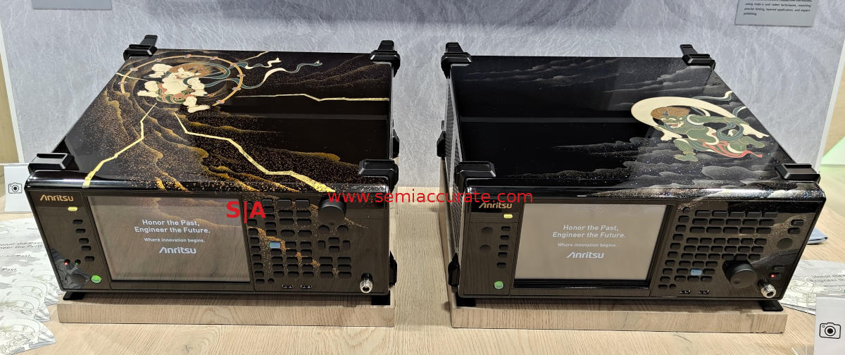 While we have vague memories of Anritsu doing this kind of show special devices before, none grabbed us like these two. As best we can figure out, the one on the left is an MS2840A Spectrum Analyzer/Signal Analyzer and the one on the right is likely a MG3710E Vector Signal Generator. As you can see, neither is a stock color and if you follow the links, it is also clear that ordering either with lacquer art by Sato Kiyomatsu Shoten is also not an option. That said it should be an option, it would make some labs SemiAccurate has visited far less dire.